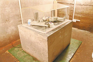 又过4道门,进入实验室内,防空洞内的回音已近消失。10平方米左右的一间房内,中央观测墩上放置着一套VP型宽频带垂直摆倾斜仪,实时捕捉被称作“地球脉搏”的倾斜固体潮和地震前兆信息。