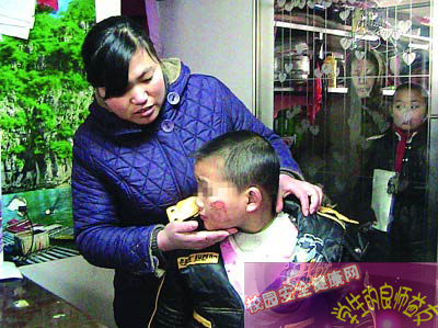 程思侠回忆,14日下午4时许,她按例到当地板桥幼儿园接6岁的儿子小崔放学回家。当看到儿子走出幼儿园大门时,她被其受伤的面部惊呆了。“他早上还是好好的,这是怎么了?”面对她的疑问,幼儿园易老师忙接茬称,幼儿园卫生间地滑,上厕所时小朋友相互拥挤,她儿子是被人不小心挤倒摔伤的。对于老师的解释,程思侠将信将疑。