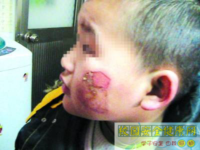 孩子脸部表皮脱落,老师称“厕所滑,挤倒摔伤的”