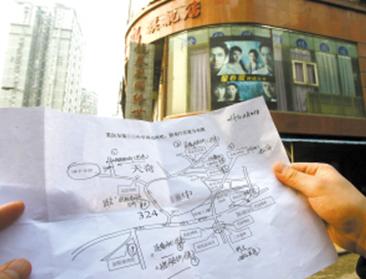 前天,记者拿着人大代表绘制的网吧地图在观音桥调查。记者甘侠义摄